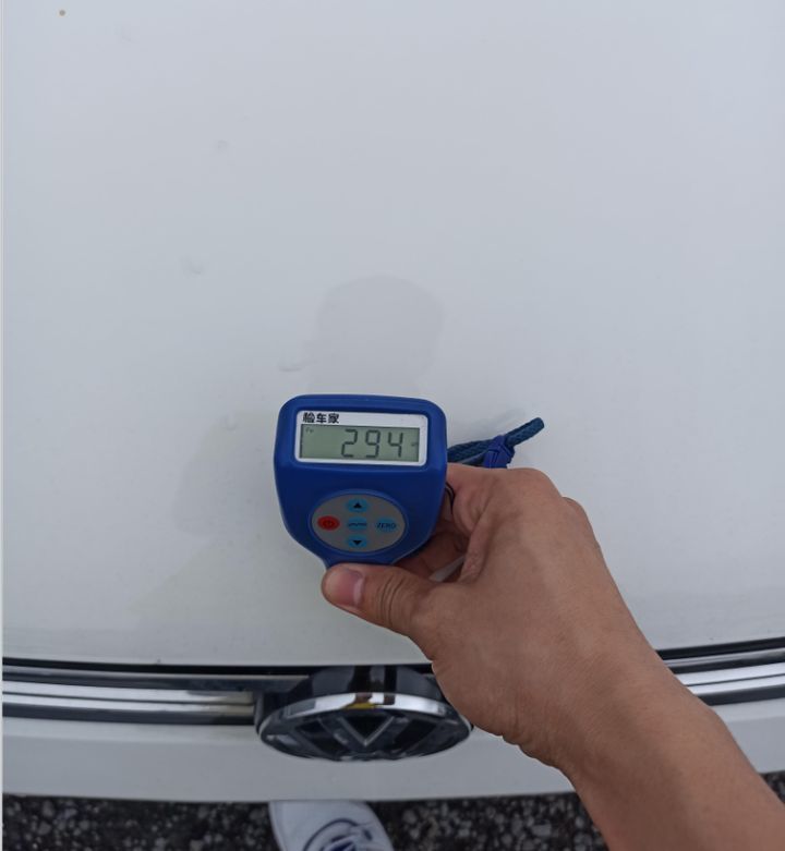 老规矩,从车头开始检测漆面。机盖喷漆,一会儿看看那里面的情况。