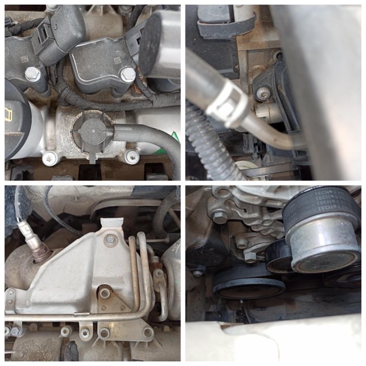 发动机气门室盖,进气管,涡轮,以及发电机,张紧轮都保持了原厂状态,分解维修是不可能的。变速箱的话得从底部才能看清楚,基本上可以下结论,左前事故并没有影响到发动机变速箱。