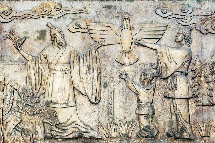 位于山东潍坊风筝广场的古代墨翟制木鹞浮雕。图|图虫创意