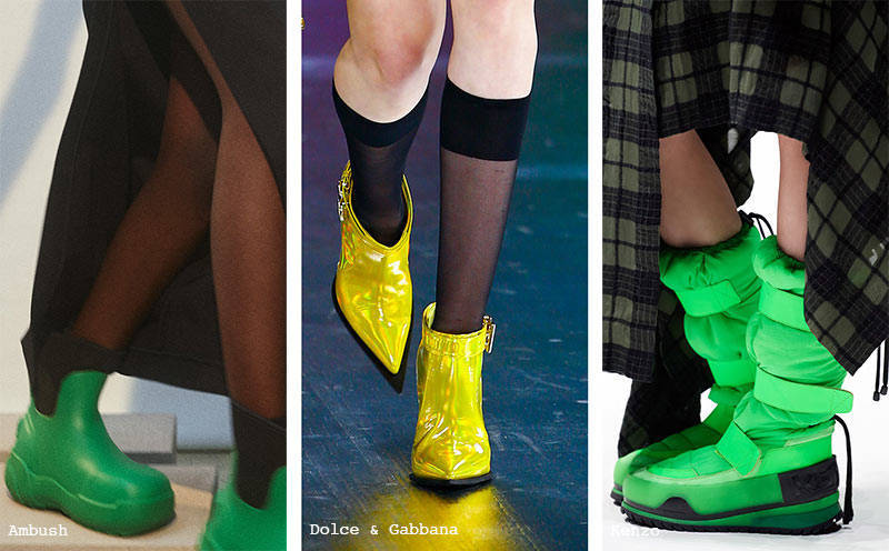 如果你碰巧读过一篇关于潘通(Pantone) 2021年秋季色的文章,你就会知道,高度饱和的色调在秋季时尚中占据了主导地位。鞋子也一样!在阿尔伯塔•费雷蒂(Alberta Ferretti),明亮的色调尤其受欢迎,他们使用了丰富的绿色。普拉达使用紫色调,Vetements则使用鲜艳的蓝色。不过,这些品牌并不是唯一使用彩虹色鞋子的品牌!纪梵希(Givenchy)、罗意威(Loewe)和芬迪(Fendi)也在即将到来的新一季的鞋子系列中使用了明亮色调。