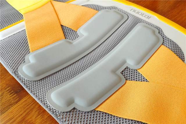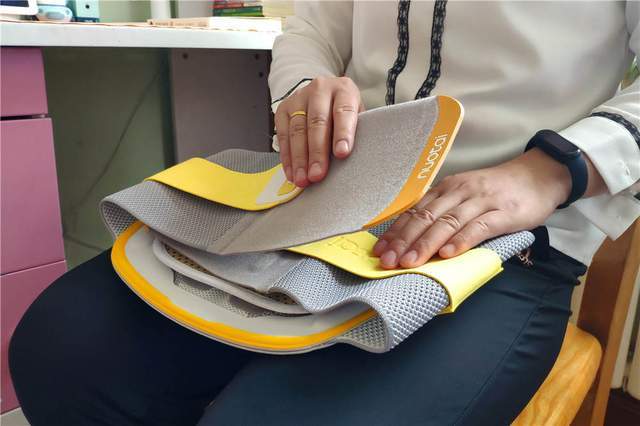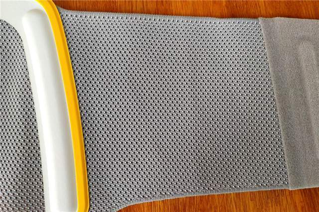 初见护腰带就感觉非常精致,首先整体以灰色为主,搭配黄色线条,看上去很有活力,我猜如此设计的初心是有恢复腰部活力的寓意吧;另外,不同材质间采用德国热压接合工艺,没有多余线头,不仅非常牢靠,也更具档次感。