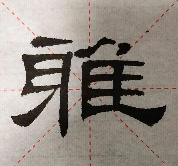 这个字和《张迁碑》中的“雅”字其实已经很像。但《张迁碑》的作者写声符“牙”的时候画蛇添足,多写了一横。就是这一横破坏了文字的隶定规则,因为声符“牙”此时已经讹作了“身”: