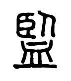 我们看“监”字头的右半,其实是由“人”和“血”(《说文》以为是“䘓”的省半)组成的上下结构。按照文字的隶定规则,上面的“人”到隶书中会写成“亠”,而“血”则写作“皿”上多加一横。于是隶定出来的“览”字便是这样: