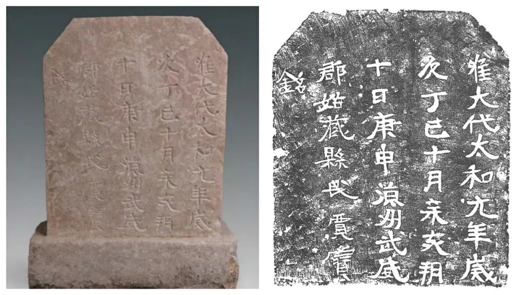 石碑及拓片(文:唯大代太和元年岁:次丁巳十月辛亥朔:十日庚申凉州武威:郡姑藏县民贾宝:铭)