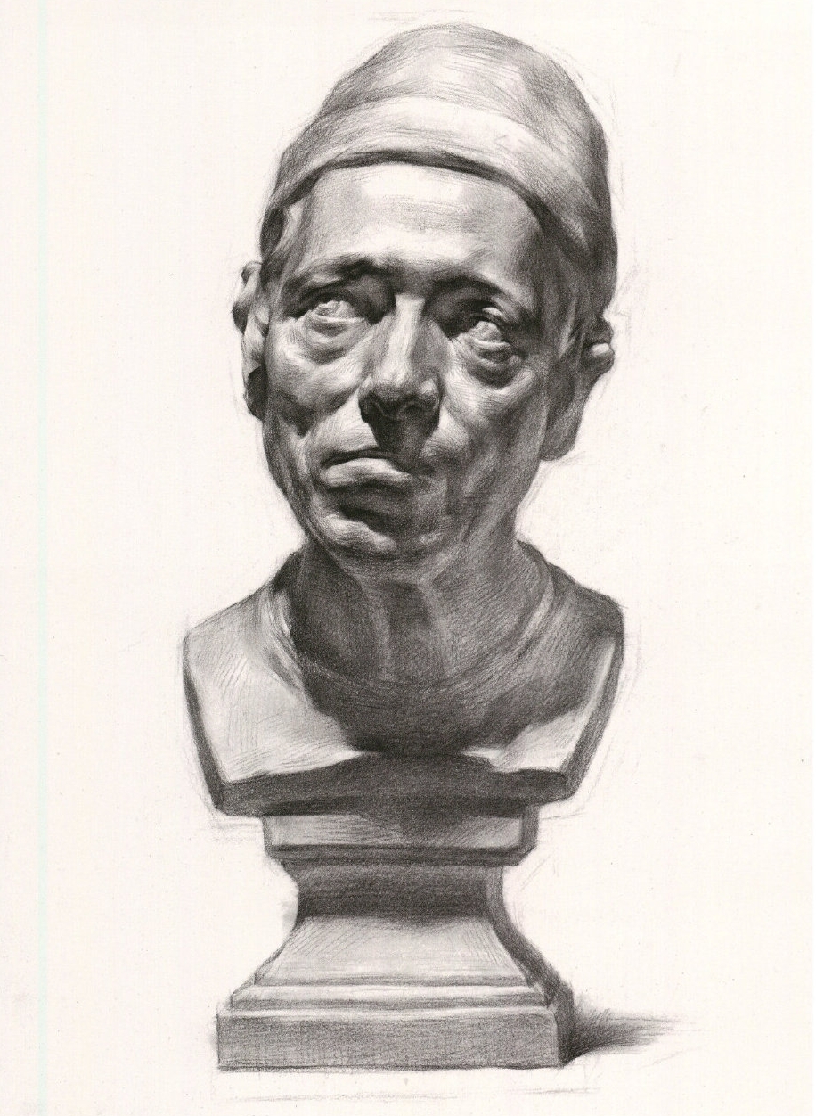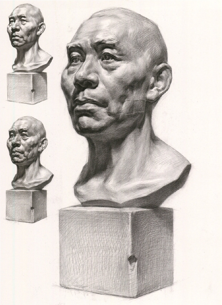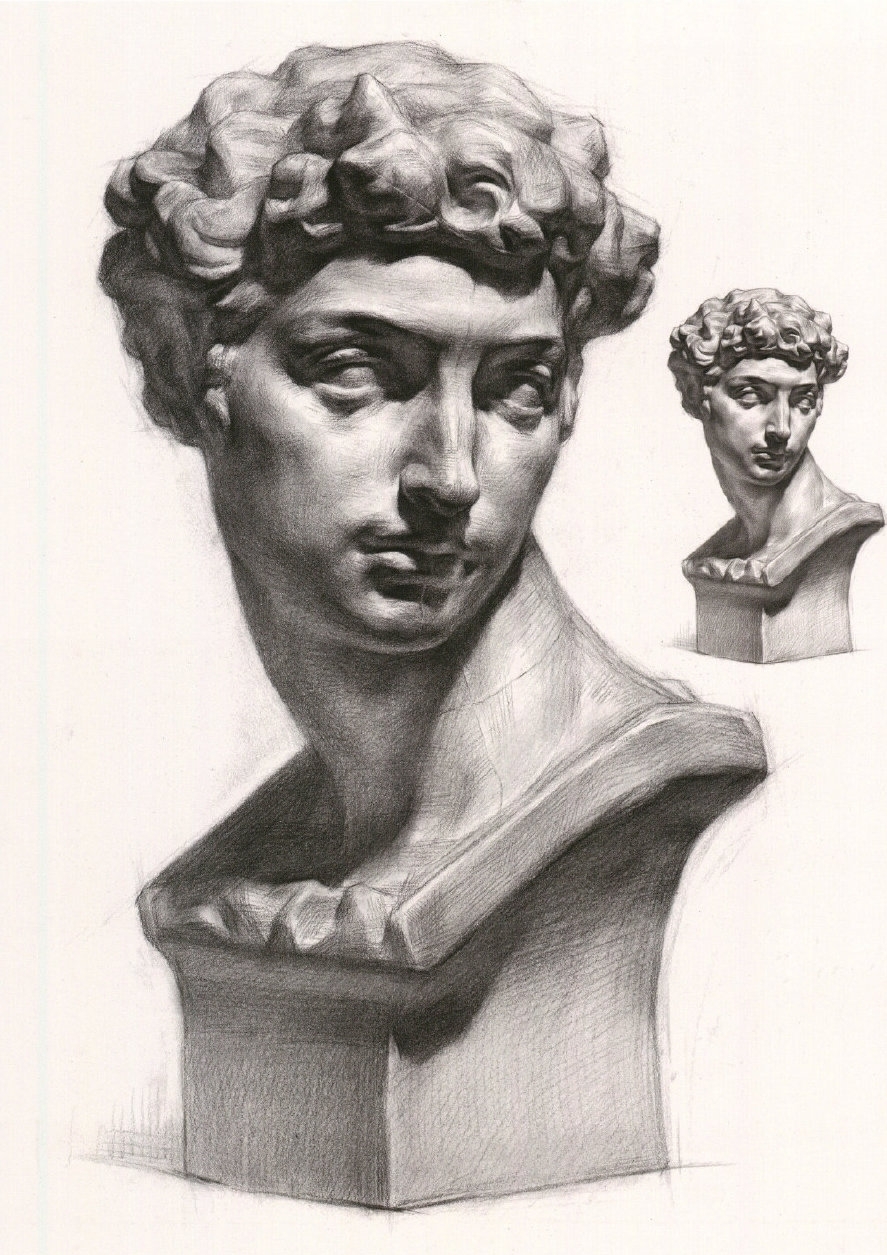 素描石膏像怎么画?首先就要有整体意识,整体意识在素描的训练中是十分塑造重要的内容,整体观察是获得在平面上塑造立体形象的前提和保证,这需要同学们以联系的、全局的目光进行观察。