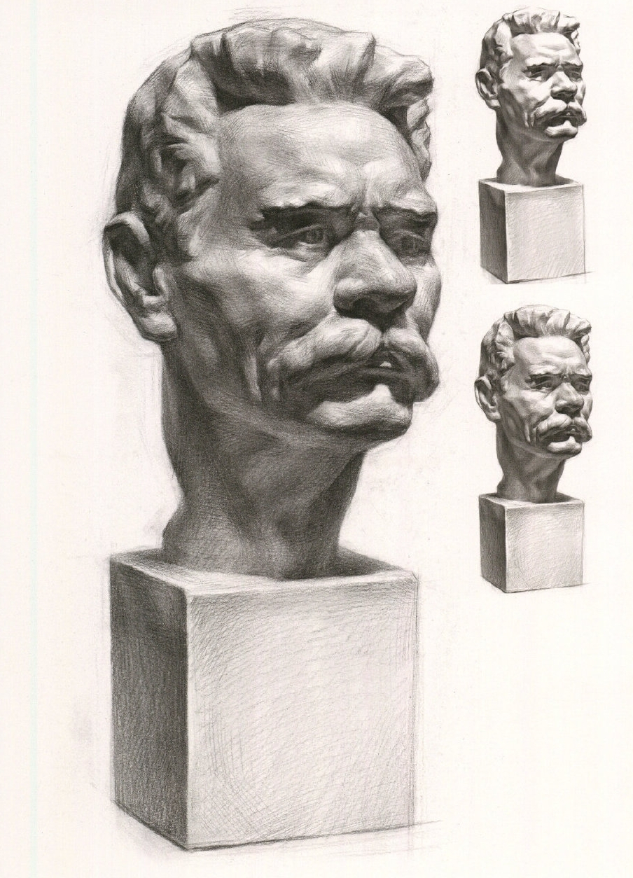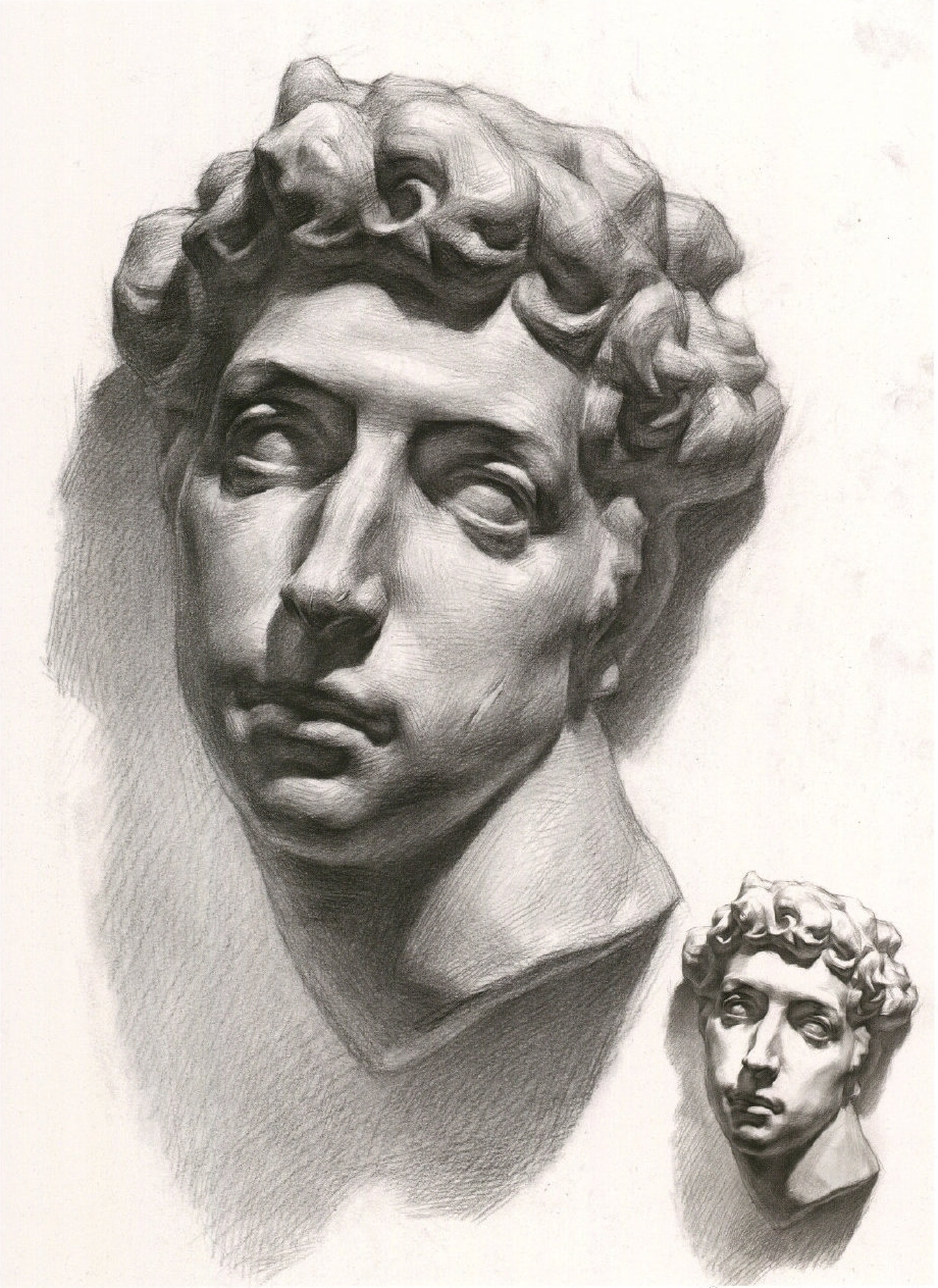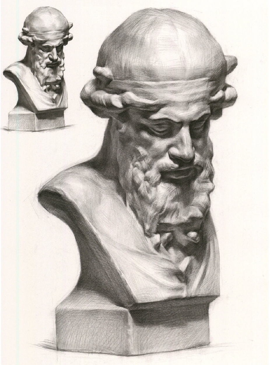 素描石膏像怎么画?首先就要有整体意识,整体意识在素描的训练中是十分塑造重要的内容,整体观察是获得在平面上塑造立体形象的前提和保证,这需要同学们以联系的、全局的目光进行观察。