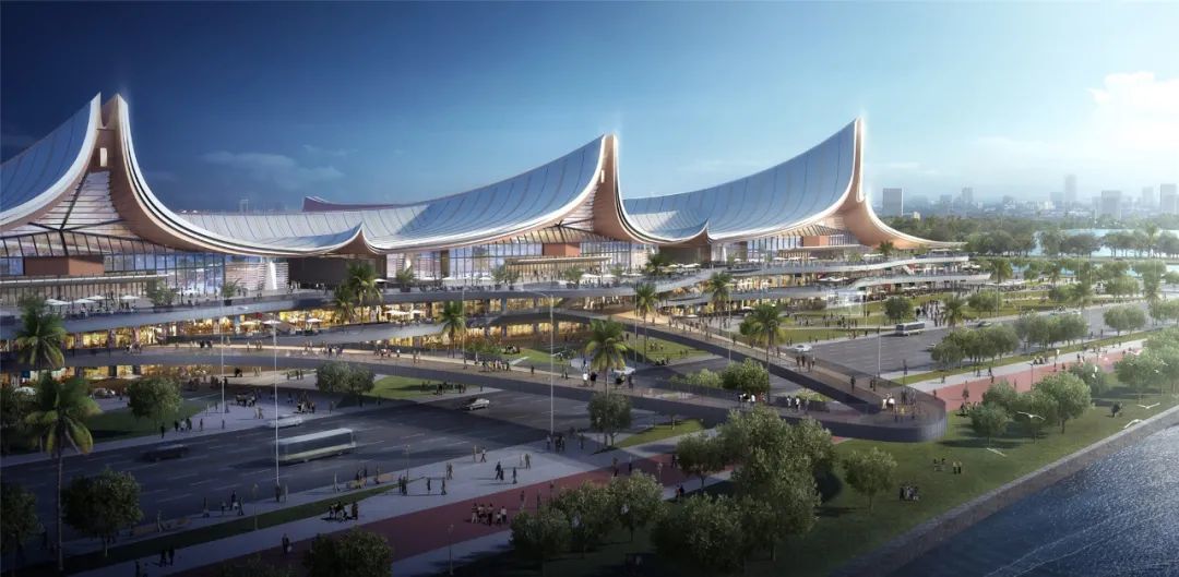 新会展中心占地面积84.7公顷,总建筑面积约106万平,定位为国际大型展览中心,兼具国际高端商业会议功能。