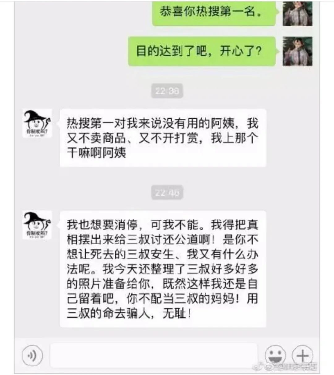 在微博看到的聊天截图,可能来自微博私信框,也可能来自微信、豆瓣、抖音等等其他的社交媒体聊天界面。