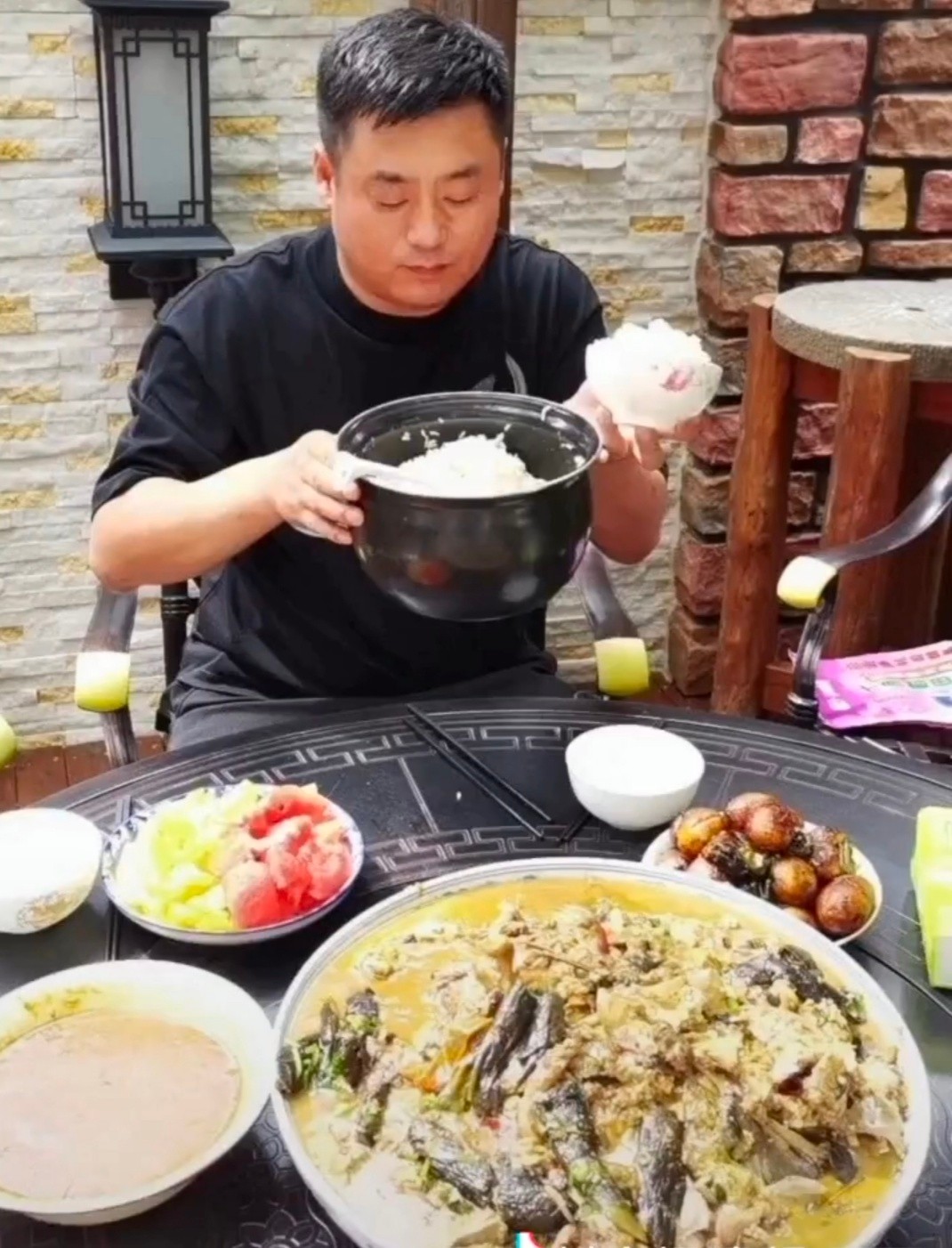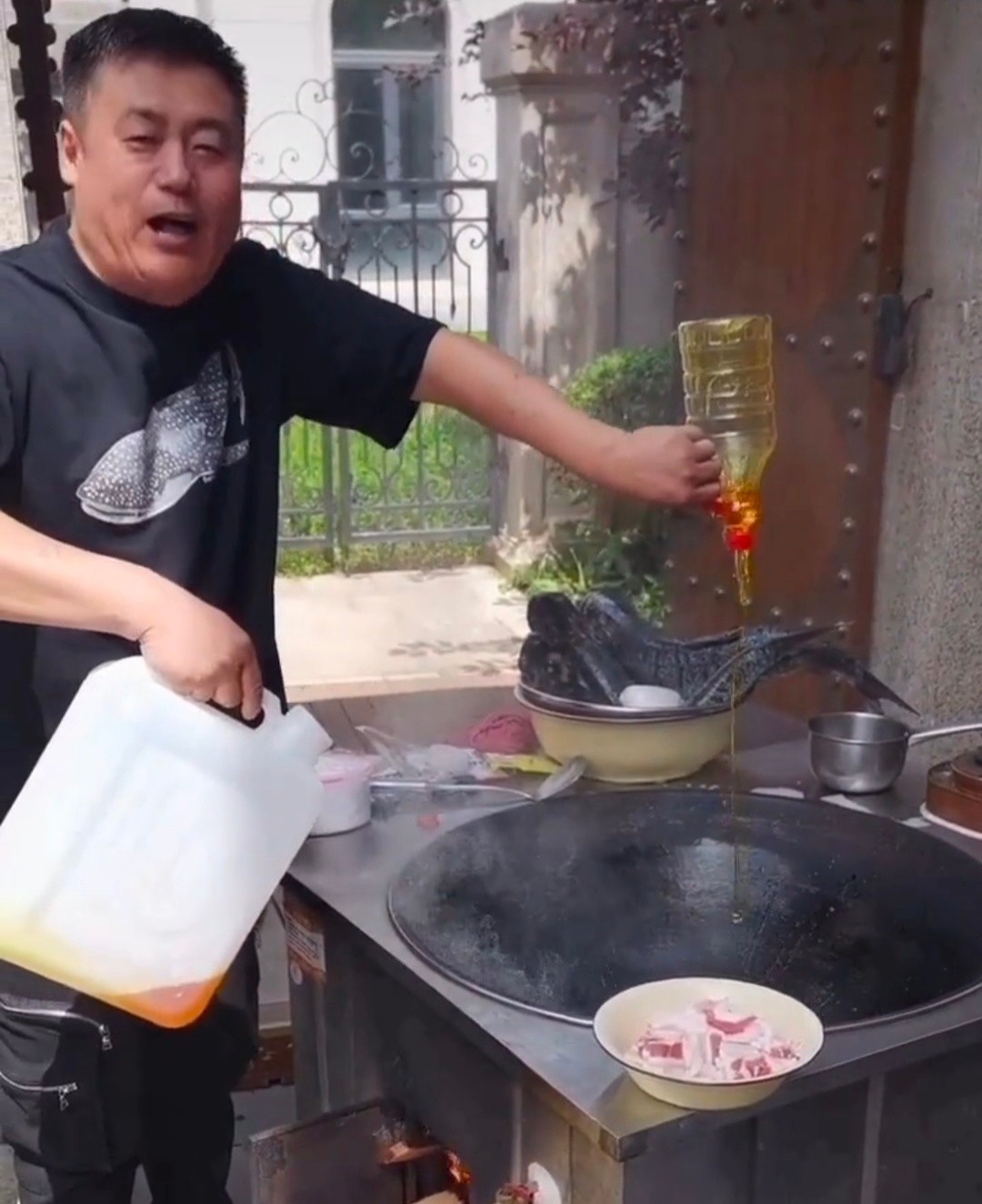 近日,喜剧演员宋晓峰在社交平台上发布一段在家中别墅炖鱼的视频。视频中,宋晓峰在院子中支起一口大锅,其后更是毫不客气拿起两个瓶子往里倒油,颇为豪气。