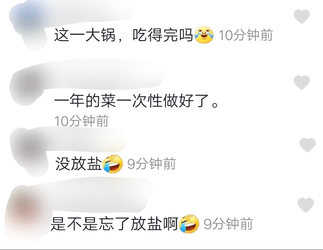 该条动态的评论区也是颇为欢乐,有网友指出,宋晓峰好像没有放盐,还有网友表示宋晓峰这是把一年的菜一次性做完了。