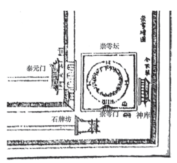 《春明梦余录》载:“泰元门东有崇雩坛,为制一成,东为神库,嘉靖中时以孟夏后(四月)祭天祷雨。”