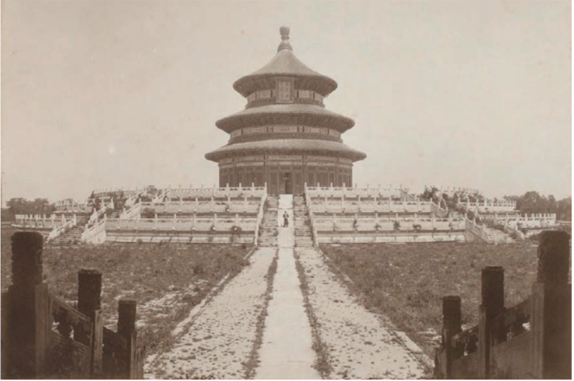 在这之中,与先农坛对称分布在中轴线两侧的天坛,作为明清两代皇帝每年祭天和祈祷五谷丰收的地方,是现存规模最大的、形制最完备的祭坛建筑群。自1860年北京中轴线被相机以影像的方式记录下来之后,天坛也留存有不少昔日的旧照。本期的京华物语,特别选取了《北京中轴百年影像》中有关天坛的部分内容。