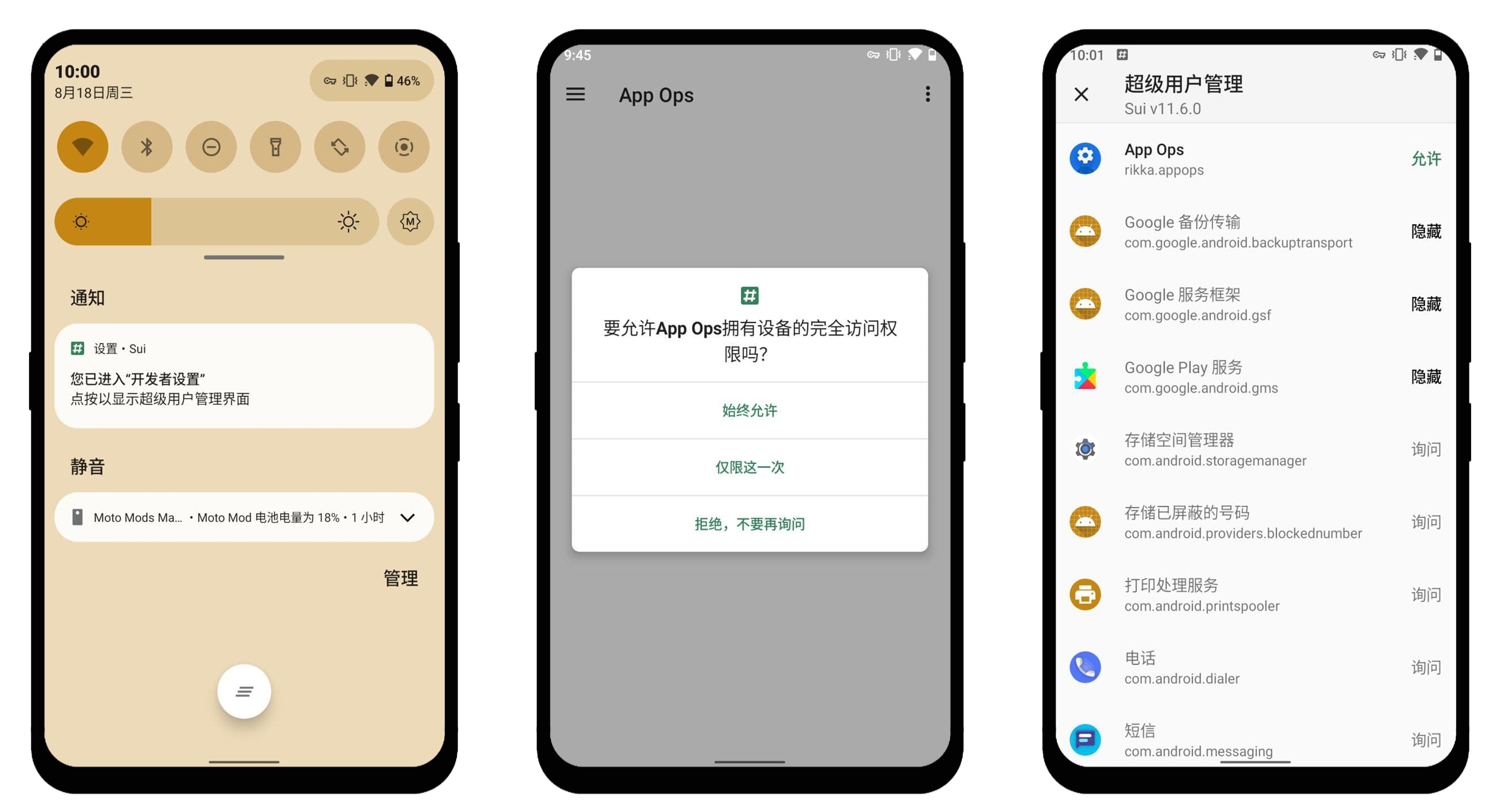 虽然标题这么说,但 Sui 严格意义上并不是 Root,它将系统各类 API 打包给其他应用使用。同开发者亦为此开发了独立的 App Shizuku。Sui 是 Shizuku 在 Magisk 上的实现。和 Root 相比,它更为精确且节制,不会出现一旦授予,系统的所有权限都被开放的情况。