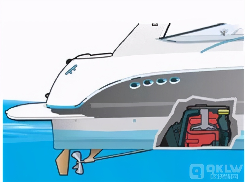 1、舷内机:推进系统由汽油或柴油发动机、金属轴系和螺旋桨组成。发动机位于机舱内,通过固定轴系与外部螺旋桨相连,固定轴穿过船体中的特殊配件。通常配有方向舵,方向舵是一种垂直的附属物,其通过螺旋桨的尾流来对船舶进行操纵,使船转向。