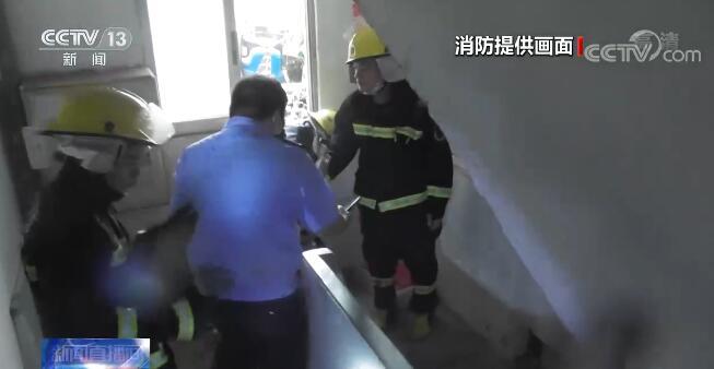 近日,湖南永州祁阳市龙山街道一居民家中发生火灾,室内充满浓烟,两人被困火场,面临生命危险。由于起火的房屋在三楼,房门紧闭,消防员立即对房屋进行断电,并利用工具破拆房门,紧接着使用水枪压制火势,进入屋内搜寻被困人员。