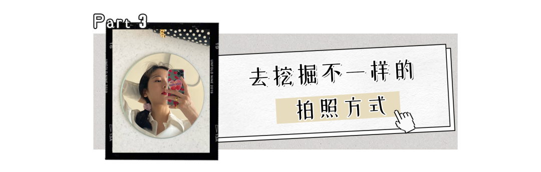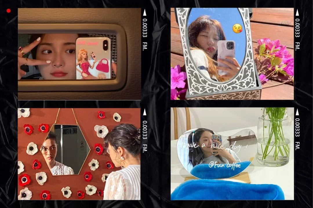 最后一个其实是考验大家有没有一双发现美的👀,挖掘更多对镜自拍的方式,各种小镜子都可以灵活运用: