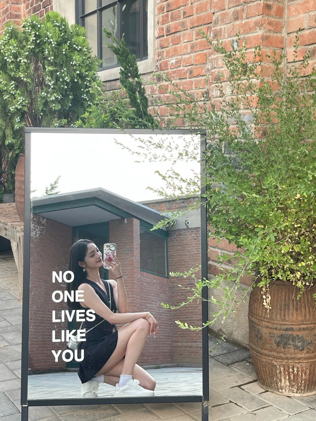 是不是没想到镜子也能成为拍照的必杀技?不信你看人间玫瑰Rosé,每张照片都出圈的秘诀就是——火爆ins的💄魔镜~