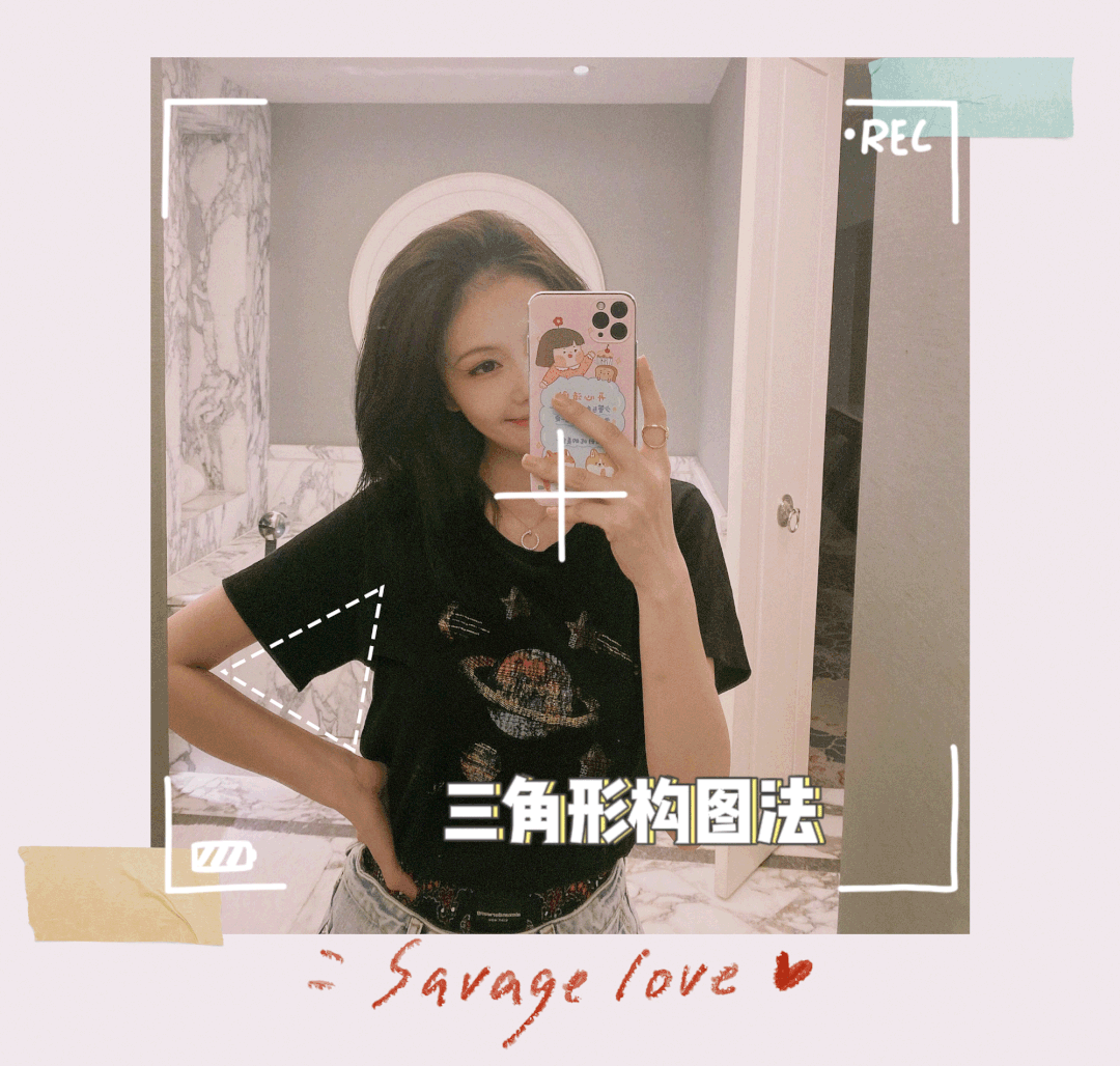 或者让自己的身体幅度再大点,三角形构图法大家也可以尝试,会让人看上去不那么呆板无趣。👇