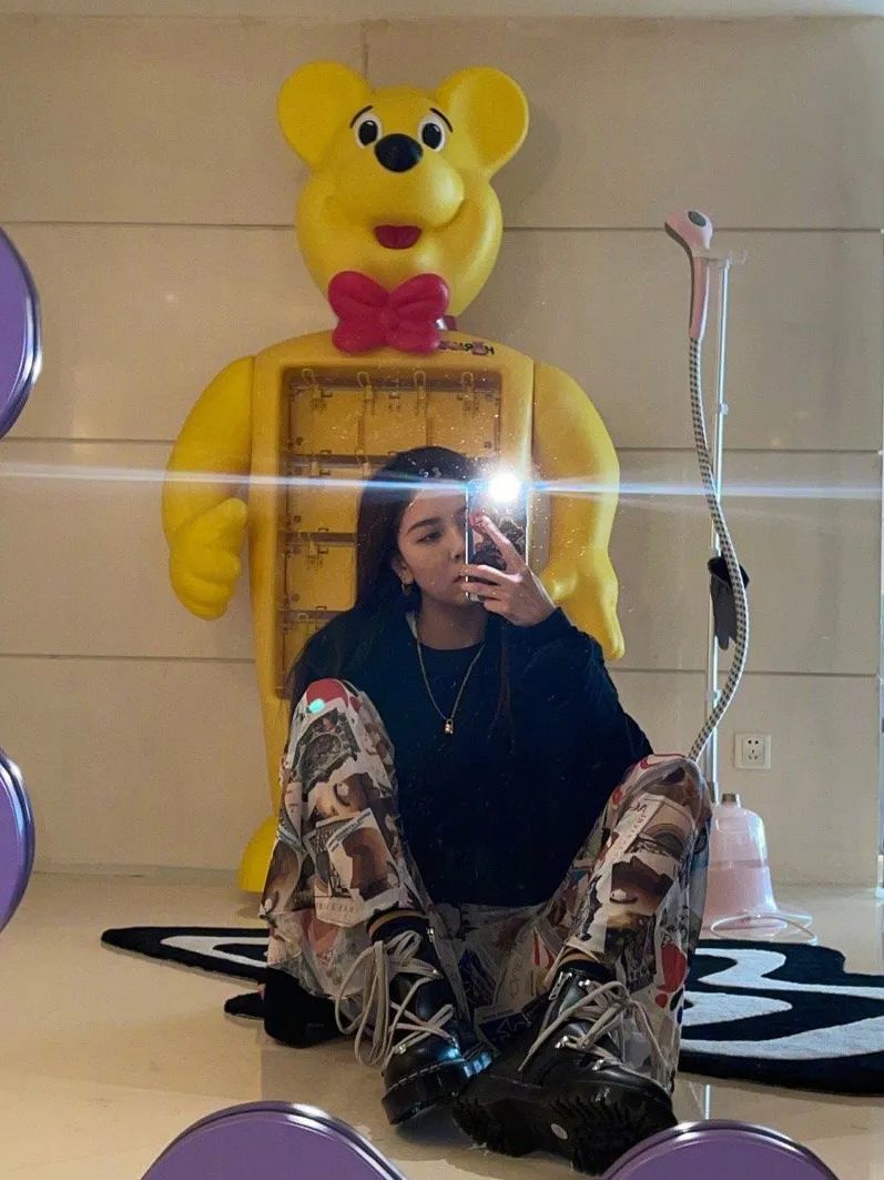 宋妍霏也po过好几张同款,只不过size比较迷你。