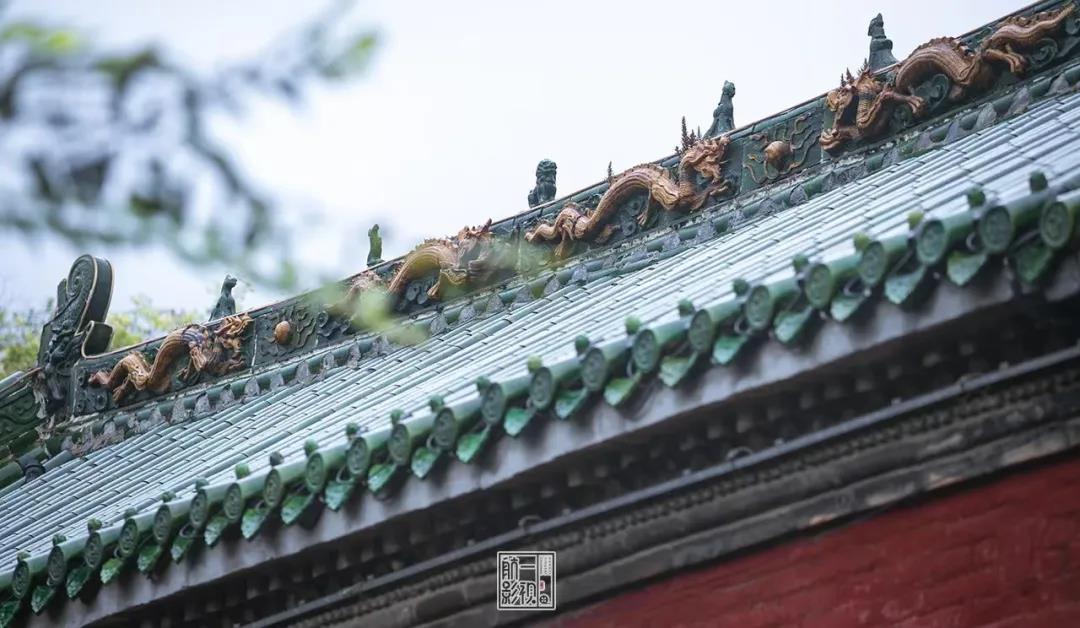 秋雨后的道德中宫,红墙瓦檐上挂起雨水珠帘。