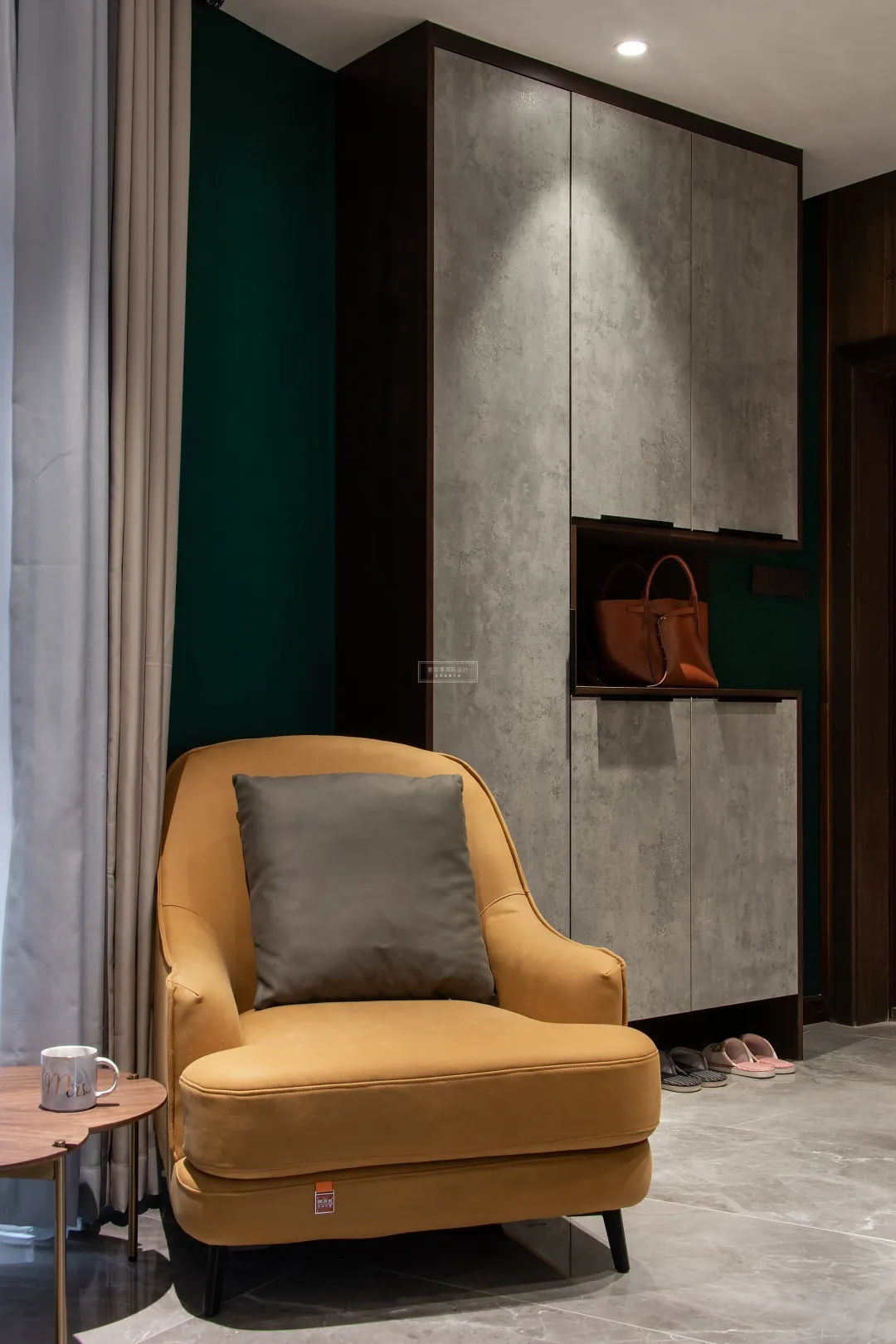 搭配窍门:选择2-3个颜色作为主色,比如灰+原木+墨绿,搭配一个挑眼色(黄)撞色过渡。
