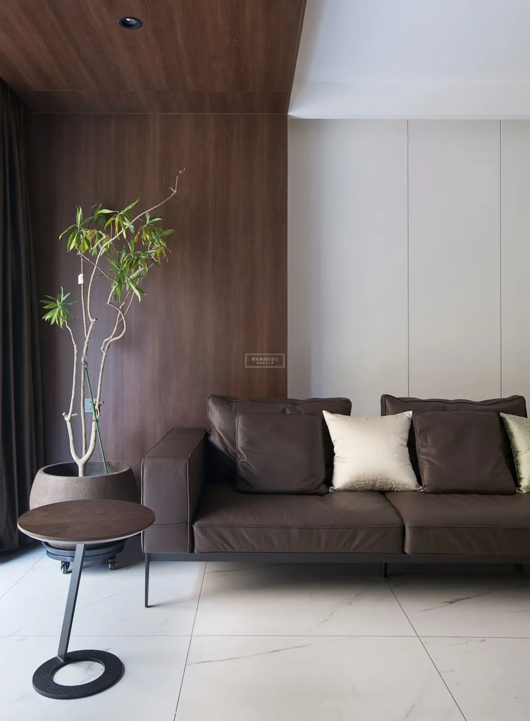 搭配窍门:舒适纯色软包沙发+金属实木的桌椅,角落配上绿植,氛围感拉满。