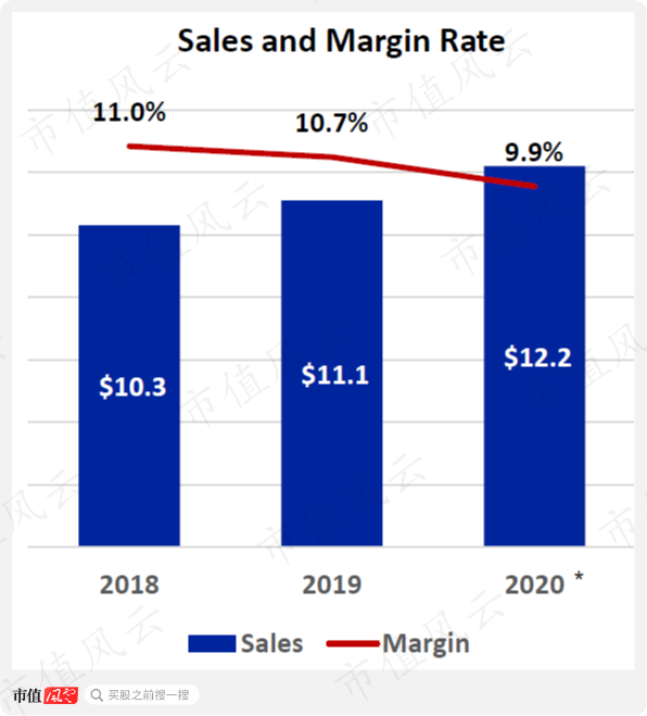 2020年,板块营收87亿,经营利润率稳中有降,为10.2%。