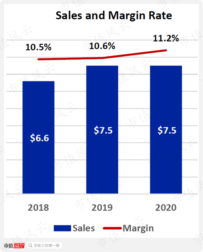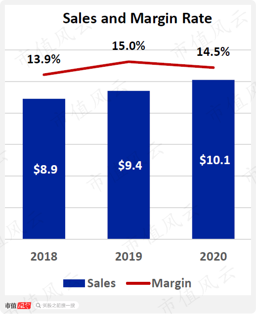 果然,板块营收在过去三年从89亿增至101亿,而经营利润率是这四个板块里最高的且长期维持在高位,2020年为14.5%。