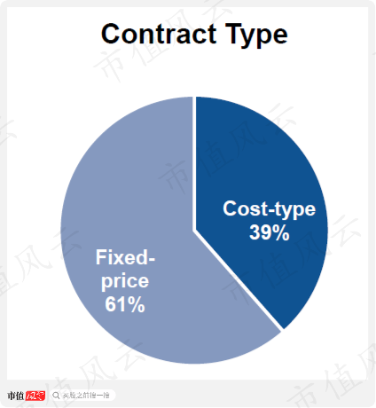 总体来看,2020年,两类合同金额占比平分秋色,各占50%。其中,美国政府客户以成本加成合同为主,而海外军购则以固定价格合同为主。