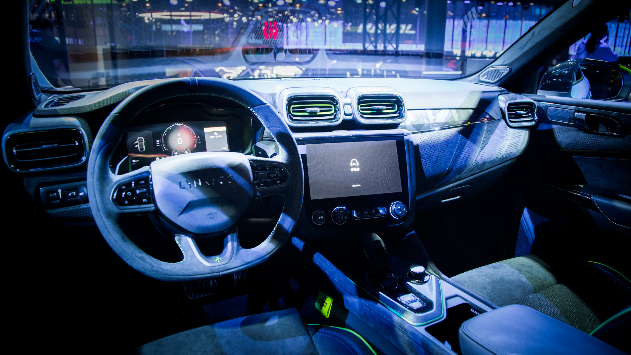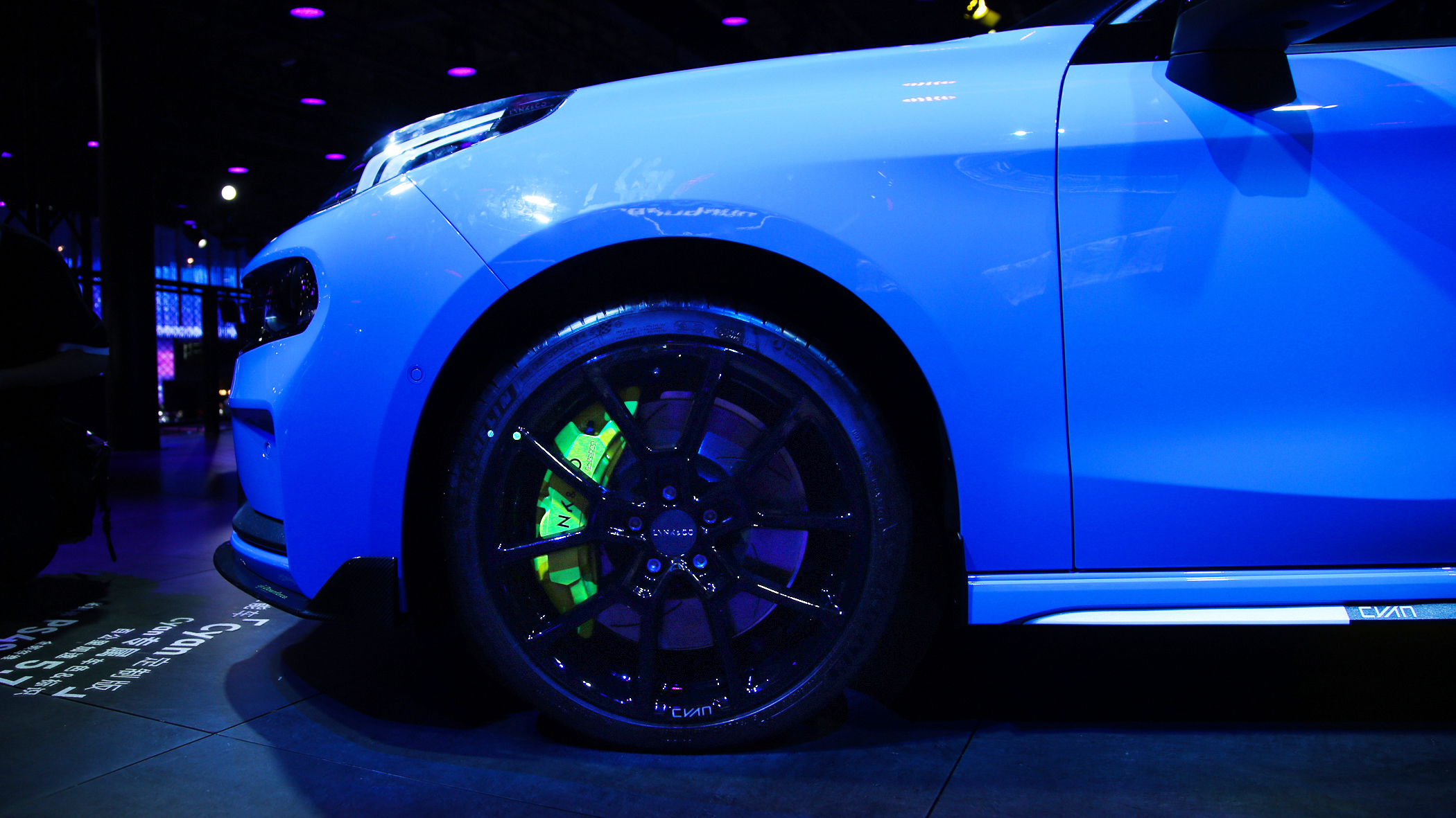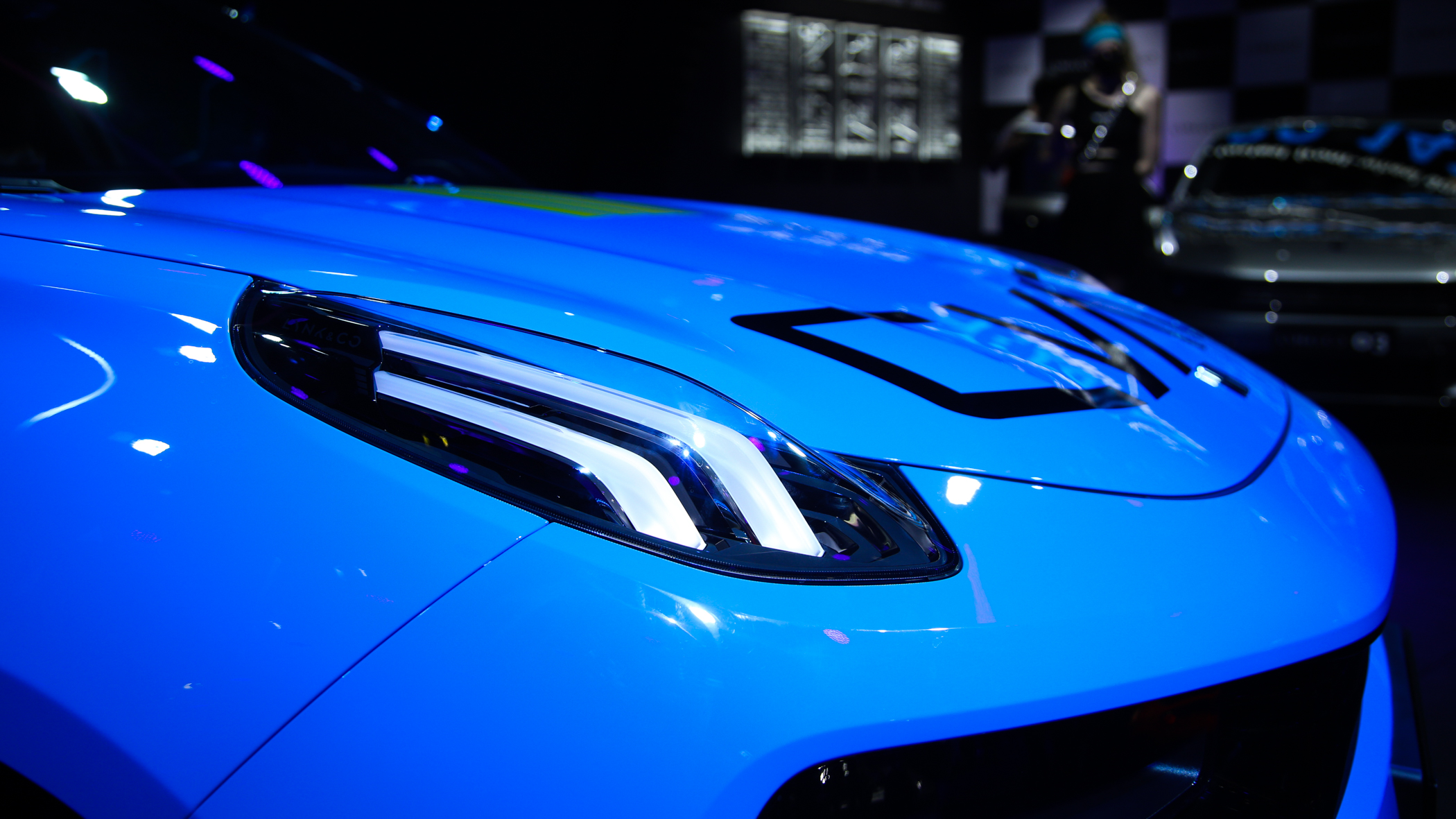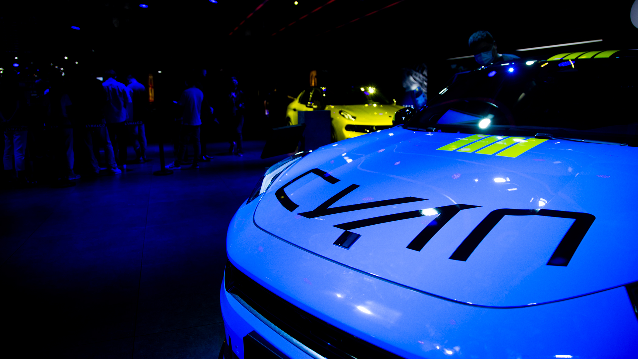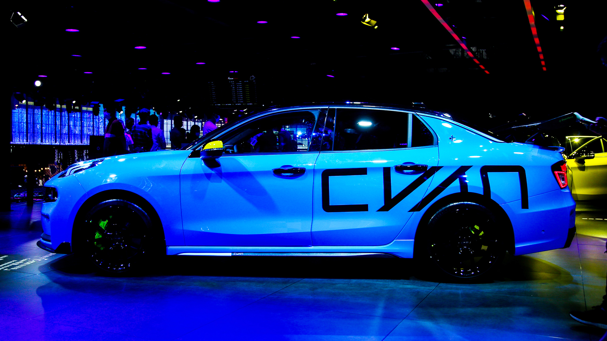 外观方面,新车的“Cyan蓝”确实足够抢眼,也可以成为领克运动系列的代表色。而在配色上,除了黑色的车顶之外,其后视镜、引擎盖还增加了黄色的拉花,而车身与引擎盖也同时带有Cyan字母拉花,战斗气息十足。