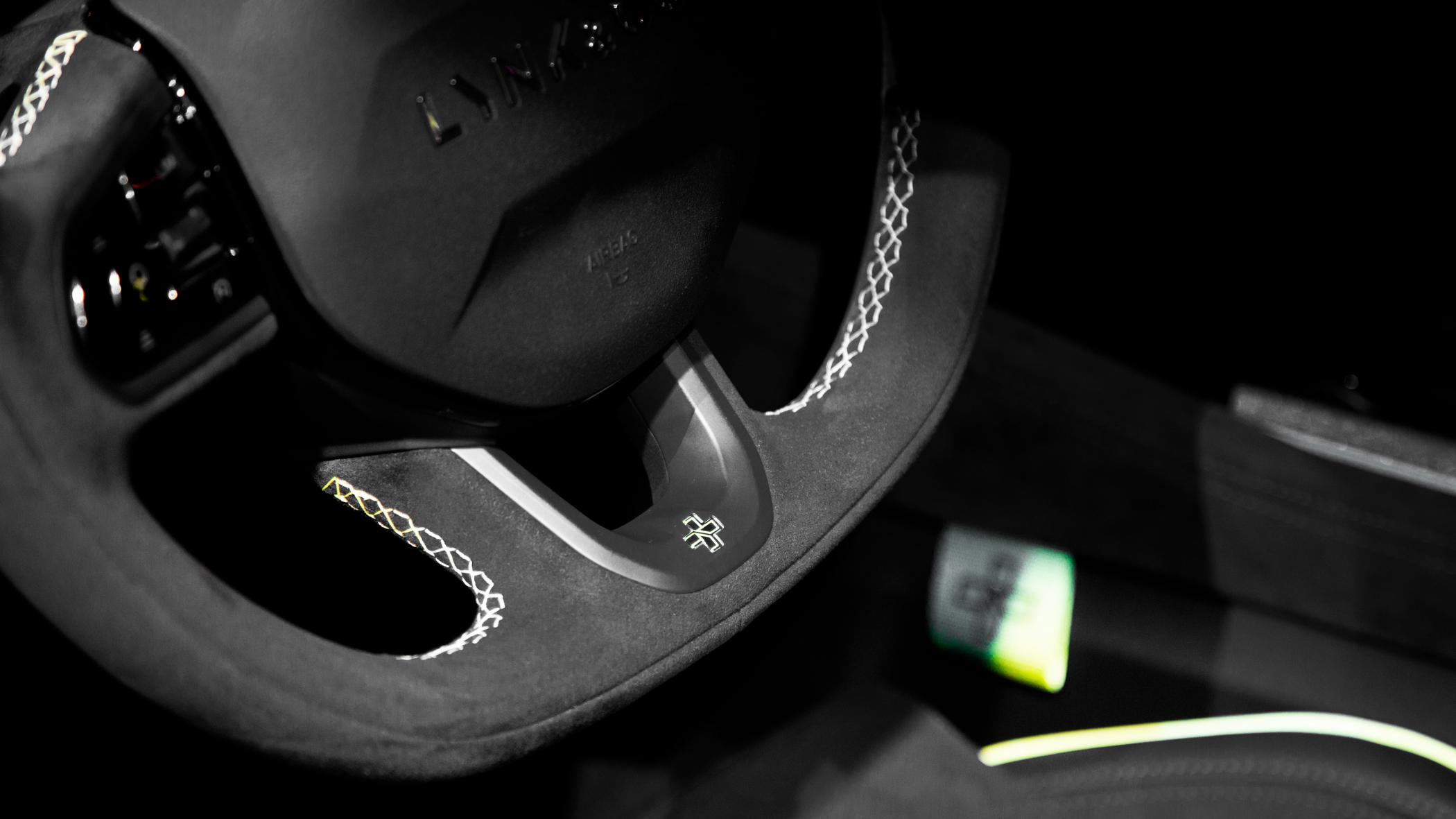 座椅依然采用了翻毛皮材质,内部的方格型纹理看起来也足够精致,很有设计感,座椅也具有很强的包裹性,在激烈驾驶时能够更好的抑制住身体的滑动。
