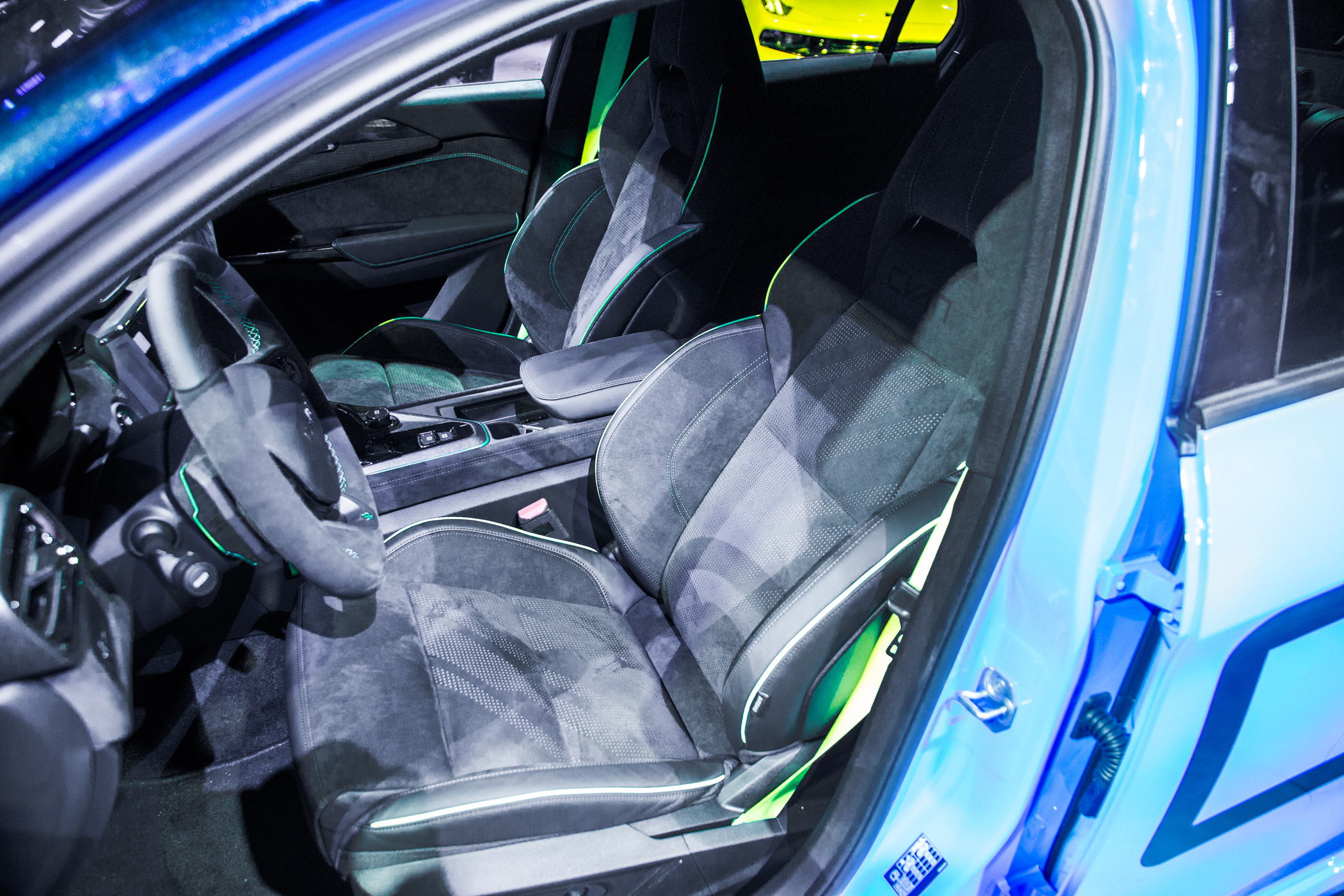 内饰方面,新车也基本延续了现款03+车型的设计,车内大面积采用了Alcantara翻毛皮,其方向盘带有回正标识,仪表主题也带有一套赛道模式。