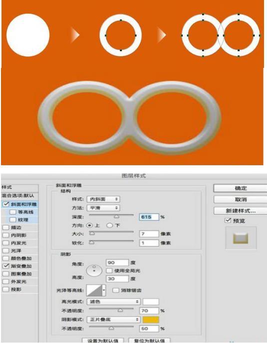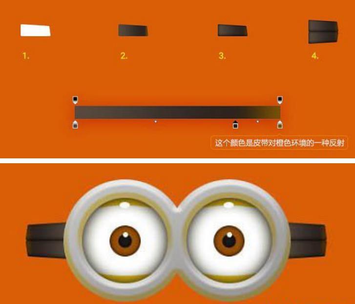 眼球部分完成后,我们需要用路径操作的方式画出小黄人眼镜的镜框部分,并按以下操作给镜框添加浮雕效果。