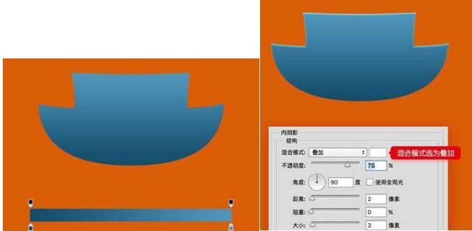 模型完成后,接着给小黄人制作衣服。绘制出衣服轮廓并给其蓝色渐变颜色和淡淡的内阴影效果。