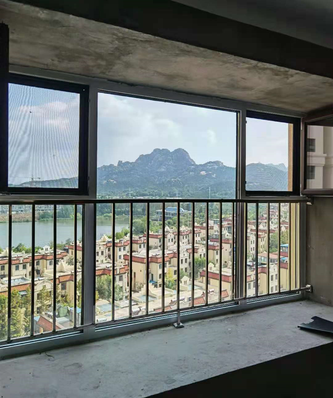 把电视墙放到西边,坐在东边沙发上往外看,看到的是大山和湖水,这景色无敌了。