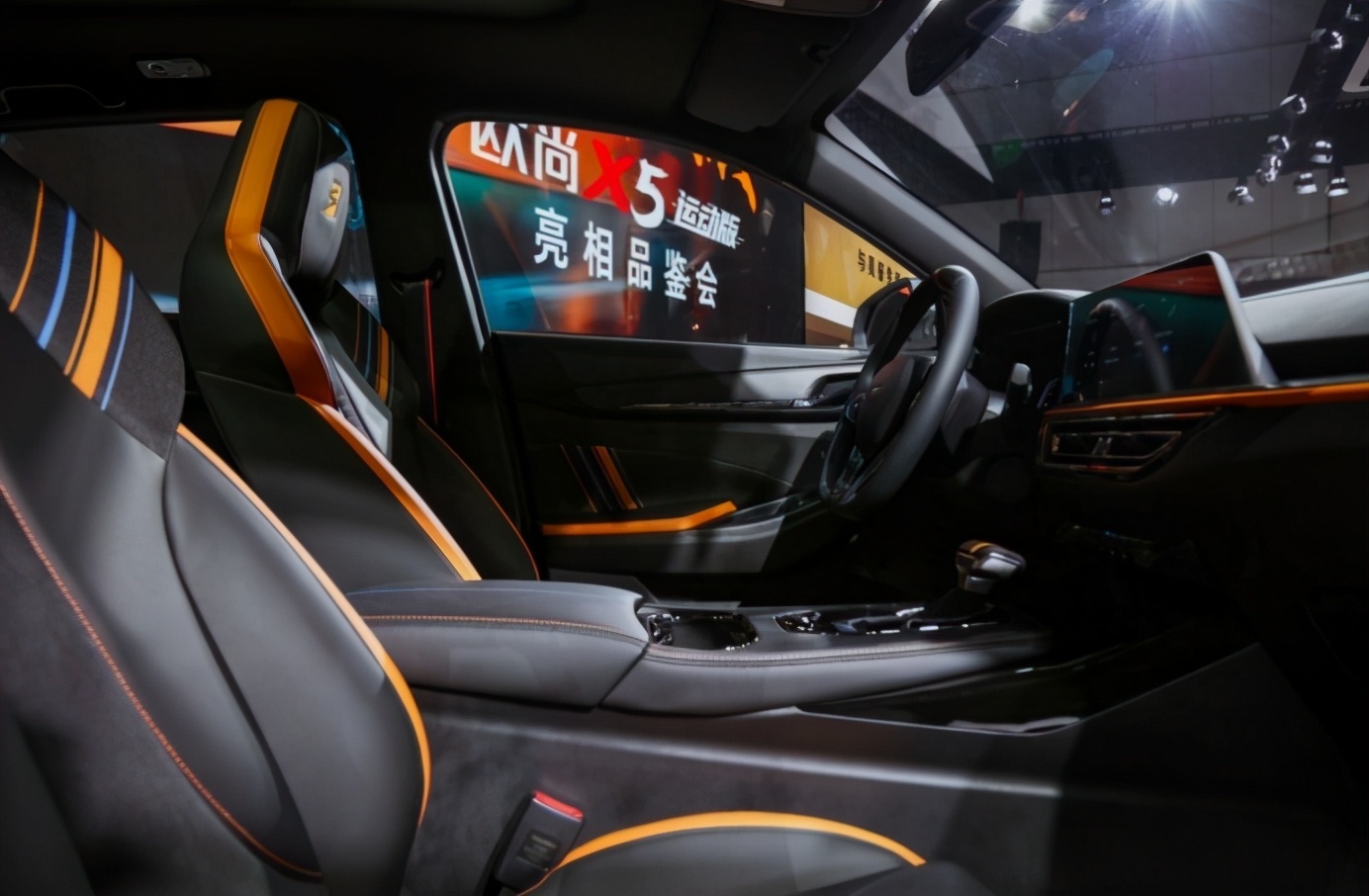 而在内饰设计上,长安欧尚X5运动版内部在普通版车型的基础上,同样融入了橙色元素,比如,新车在一体式赛车座椅上增加了橙色包边设计,还特别在头枕处设计了一个S专属标识符号,让运动感更加拉风。