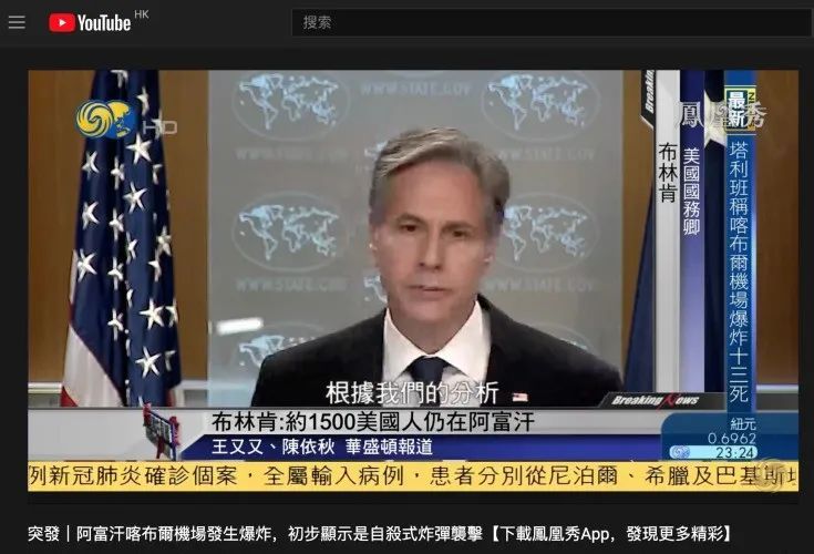 22:00,距离《凤凰全球连线》播出还有半小时,节目组推翻全部原有安排,分秒必争,在22:30分推出了一期全新的节目:聚焦喀布尔机场爆炸,连线兰州、华盛顿、喀布尔三地嘉宾。