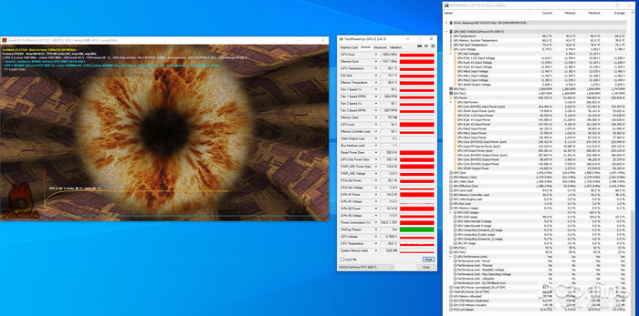 在烤机15分钟后,影驰 GeForce RTX 3080 Ti HOF Pro的核心温度为68.1度,显存温度为80度,显卡功耗为350.9W,无论是核心还是显存的温度表现相当稳健。