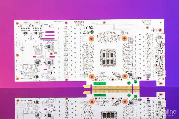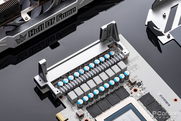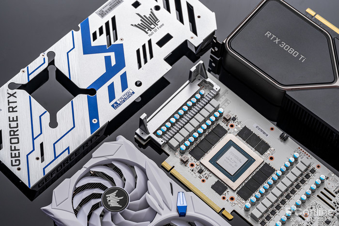 接下来对影驰 GeForce RTX 3080 Ti HOF Pro进行拆解,可以看到显卡采用定制的12层纯白PCB,毕竟这也是名人堂家族的特色之一了。