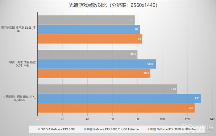 在第二代光追核心的加持下,影驰 GeForce RTX 3080 Ti HOF Pro的光追游戏帧数表现还是非常令人惊喜的,帧数平均领先RTX 3080公版11%,可以实现流畅的2K高帧率光追游戏体验。