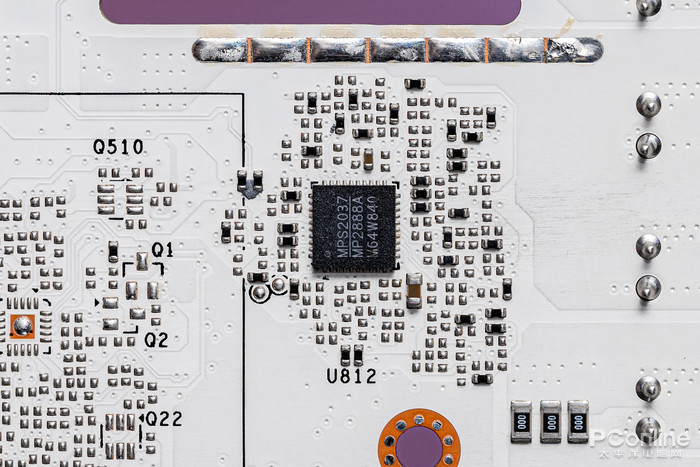 核心供电PWM主控由同样是来自芯源电子的MP2888A、MP2886A,组合实现10+6=16相核心供电控制,另外还有一颗4相PWM主控MP2884A进行协助控制。