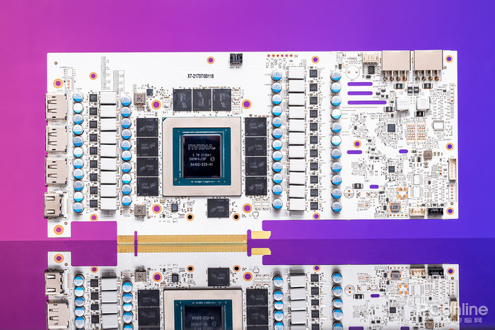 另一侧是2个8Pin外置供电接口,加上PCIe供电,有效保证显卡的高性能发挥。