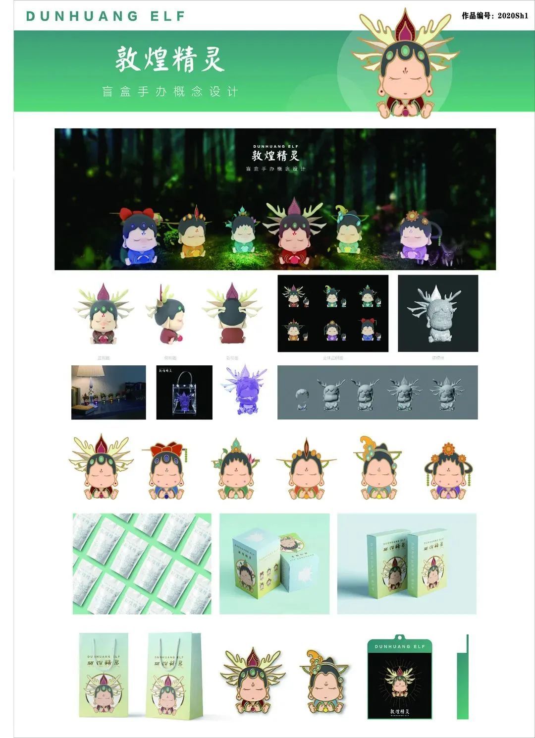 本作品提取敦煌典型艺术元素与特征,进行敦煌守护精灵的的形象设计,借此向更多的年轻人传递传统图案的魅力,致敬敦煌的守护者们。