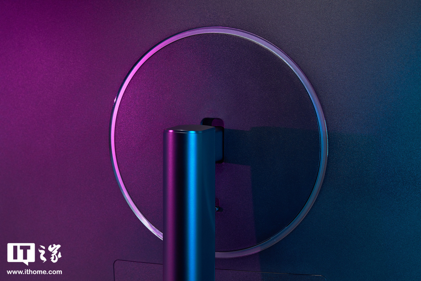 华为 MateView GT 中轴对称式极简几何设计语言,背面极具辨识度的冰霜银星环,还采用了人体工程学支架,单手即可调整上下高度和俯仰角度。