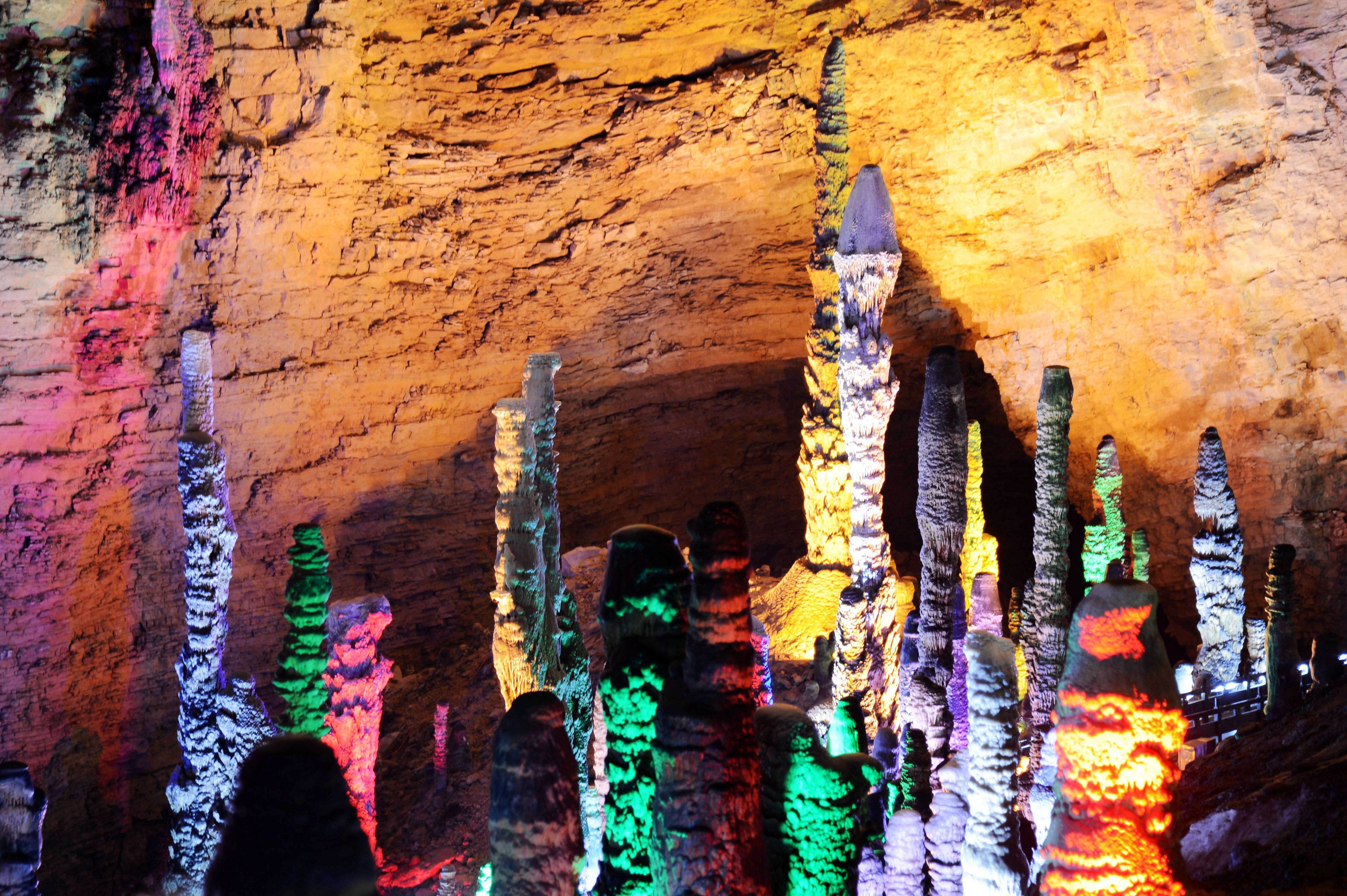 天上峰林张家界,地下山河黄龙洞。黄龙洞位于张家界核心景区武陵源的东端。景区距离武陵源东门约八公里,由“世界溶洞奇观”黄龙洞、最美的田园风光生态广场及国内首个生态剧院黄龙音乐厅三个部分构成。享有“世界溶洞全能冠军”“中华最佳洞府的美誉”,曾被评为“中国最美旅游溶洞”。其标志性景点“定海神针”被投保一亿元,开创了世界为资源性资产买保险的先河。(李远明)