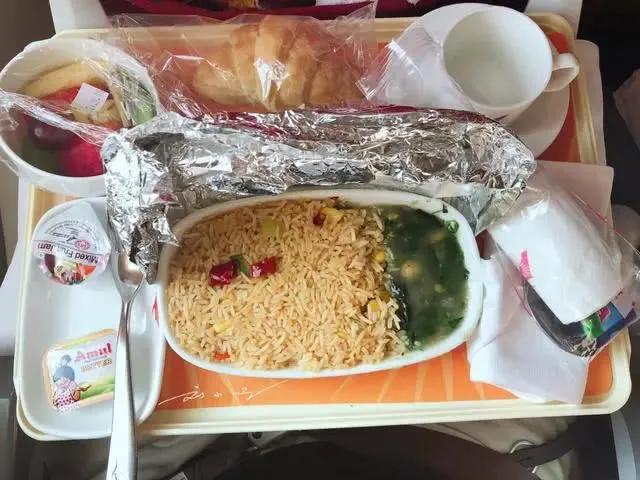 印度喜欢吃咖喱米饭,不管是街边的餐馆里,还是飞机餐都少不了咖喱味的米饭,这份飞机餐里看不见菜品,只见黄色的米饭,这样的飞机餐,你愿意吃吗?