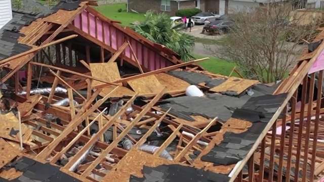 一份拍摄于该州霍马市(Houma)的影响资料显示,周一,“艾达”过境时摧毁了一座保龄球馆。视频中的场馆已满目疮痍,强风把整个屋顶掀了起来,木头碎片和房屋隔热材料散落一地。透过剩余的房梁,可见空中乌云密布。