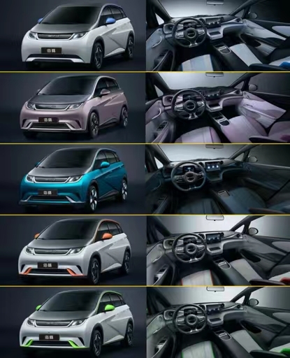 先看外观,相对比比亚迪的王朝系列车型,海豚是比亚迪专为新世代年轻用户打造的“纯电新物种”,而且是比亚迪海洋车系的首款车型,采用的是“海洋美学”设计理念,这其中包括比亚迪新LOGO、首款基于比亚迪e平台3.0打造的车型。从外型上来看,以“海豚”的生物特征为灵感的海豚造型简约时尚,最过明显的就是侧面剪影,如同“海豚”越出水面的背脊,极具辨识度和未来感。同时像海豚之眼的LED组合车灯、蚌壳式前机舱盖、双子星灵动轮毂等都充满的海洋元素。而在车身颜色上,海豚是双色车身,贝贝灰是上半部分车的颜色,所有款型都是一样,下半部分有嘟嘟白、噗噗粉、冲浪蓝三种颜色。嘟嘟白的后视镜、饰条、内饰有三种颜色,闪闪蓝、蜜蜜橙、飒飒绿,噗噗粉的内饰色也是噗噗粉,冲浪蓝的内饰色是骑士蓝。车身上的两种装饰纹理(在d柱和前脸),只有低配是水波纹,其他配置版本都是斜纹。
