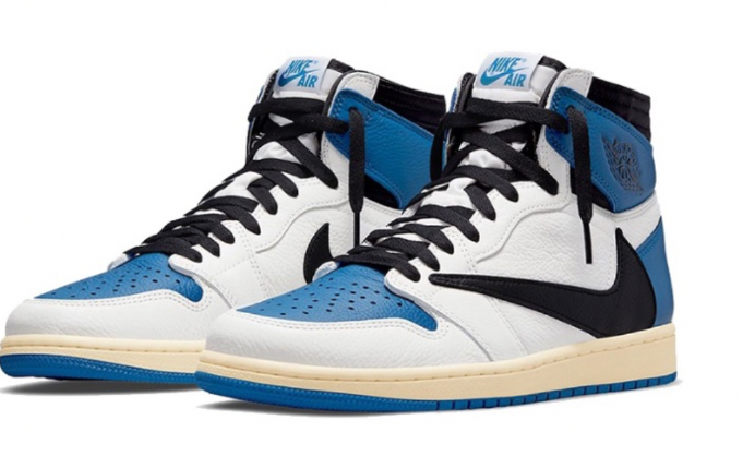 据悉,这款“闪电倒钩”高帮鞋款是由耐克品牌发售的美国著名说唱音乐人Travis Scott、日本“潮流教父”藤原浩fragment design和Air Jordan三方联名的一款新上市鞋款。这款鞋于近日一上市就成为近期球鞋市场上热度最高的重磅产品,并且在网络交易平台得物APP上越“炒”越热。