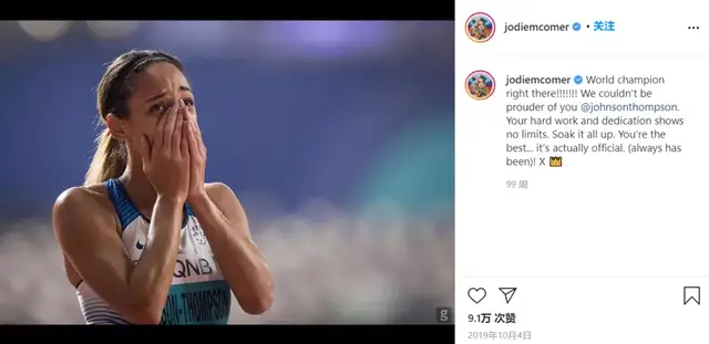Jodie 在 INS 为好友 Johnson Thompson 比赛加油